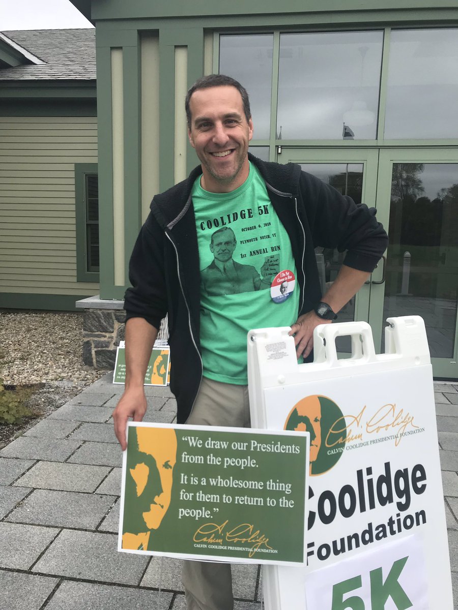 Coolidge 5K complete and triumphant. Here Prof Jared Rhoads, the founder. Note the poster board with information for your runner.pic.twitter.com/qWTwnKO0R8