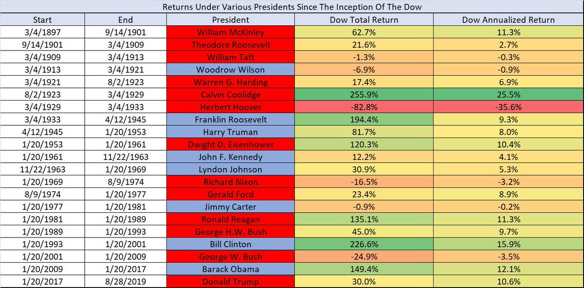 Coolidge, the Quiet President, has the best annualized market return, and close second total return after another President C. I wouldn’t have known that. Interesting. @AmityShlaes must be aware.