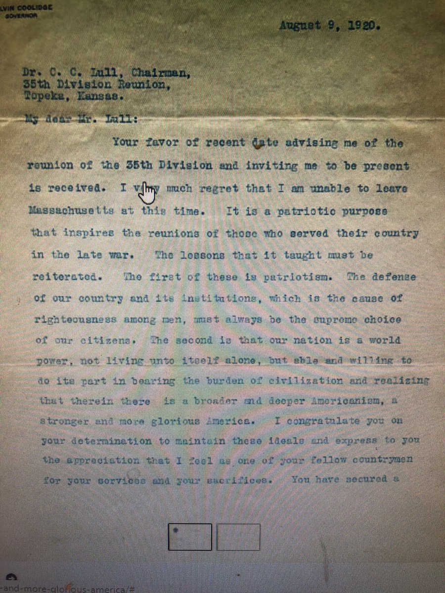 Daily Coolidge… A letter from Coolidge after a time of upheaval (World war I,a few rough years after…)Promising “a stronger and more glorious America.” And it is for sale at Shafran collectibles...pic.twitter.com/rdtEOZAU8h
