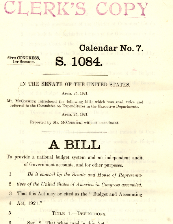 1921 bill "To provide a national budget system..." -- wait, don't we need this again?#deficit #thrift #coolidgeclubpic.twitter.com/1SMQcXDSh6