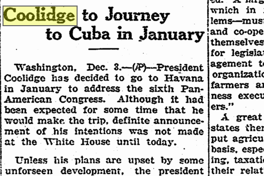When a prez does something you don't expect -- Coolidge going to Cuba -- announced in early Dec 1927 #coolidgeclubpic.twitter.com/41t9SKA169