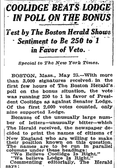 Around #memorialday 1924, Coolidge's planned veto of a vets' bonus bill was in news. Tough.But some supported CC. NYTpic.twitter.com/LThM0dC8mw