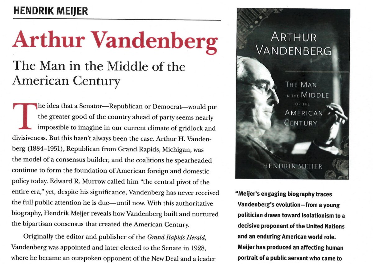 "The Man in the Middle of the American Century" Looking forward to this book on Arthur Vandenberg. Vandenberg built consensus.pic.twitter.com/464UTJJLe2