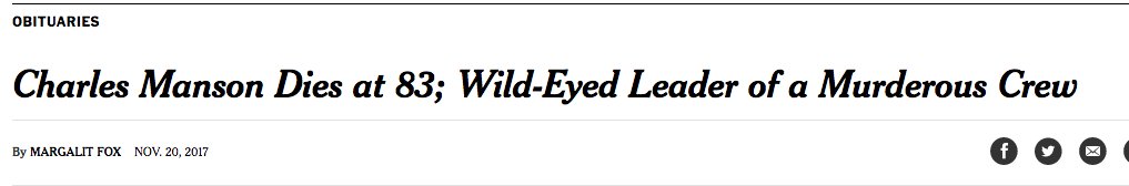 Huh? To me he was a minor, insane aberration that had no impact on the Northeast. Just a California curiosity. I think of the hippies, civil rights, MLK, JFK, RFK, Vietnam War, .... My school music teacher was a hippie type who taught us civil rights and peace songs. Great lady.