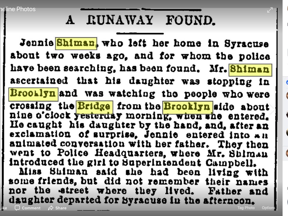 Raising an unruly daughter, 19th Century style. Love the low-key way the paper reports this runaway anecdote. Can see why girl preferred Brooklyn to Syracuse, too.pic.twitter.com/LPS5yHuOaG