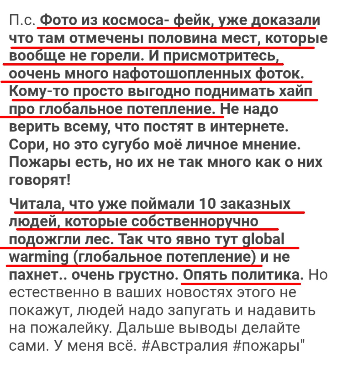 Как вам? Рижанка: "Пожары в Австралии - это фейк, это точно кому-то выгодно". На данный момент этот её пост в Фейсбуке уже недоступен. https://bb.lv/statja/lifenews/2020/01/06/shok-rizhanka-mega-pozhary-v-avstralii-eto-feyk-eto-tochno-komu-to-vygodno-foto …pic.twitter.com/b9piz5bE4c