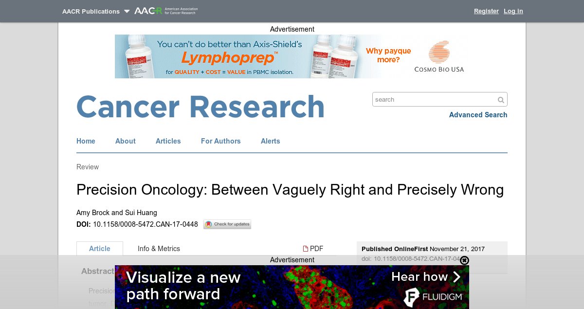 Our new commentary at Cancer Research discusses the challenges of Precision Oncology