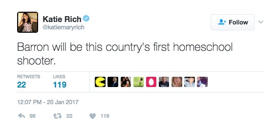 @AmyMek@babeonbay@katiemaryrich Anyone picking on Barron Trump or any other child of a politician is out of line. Way out -