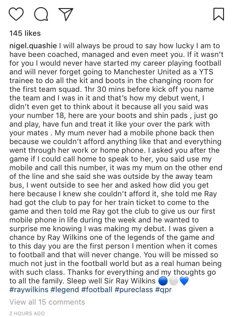 This Nigel Quashie story about Ray Wilkins speaks wonders about the man. What a legend Ray was. He'll be sorely missed. RIP.