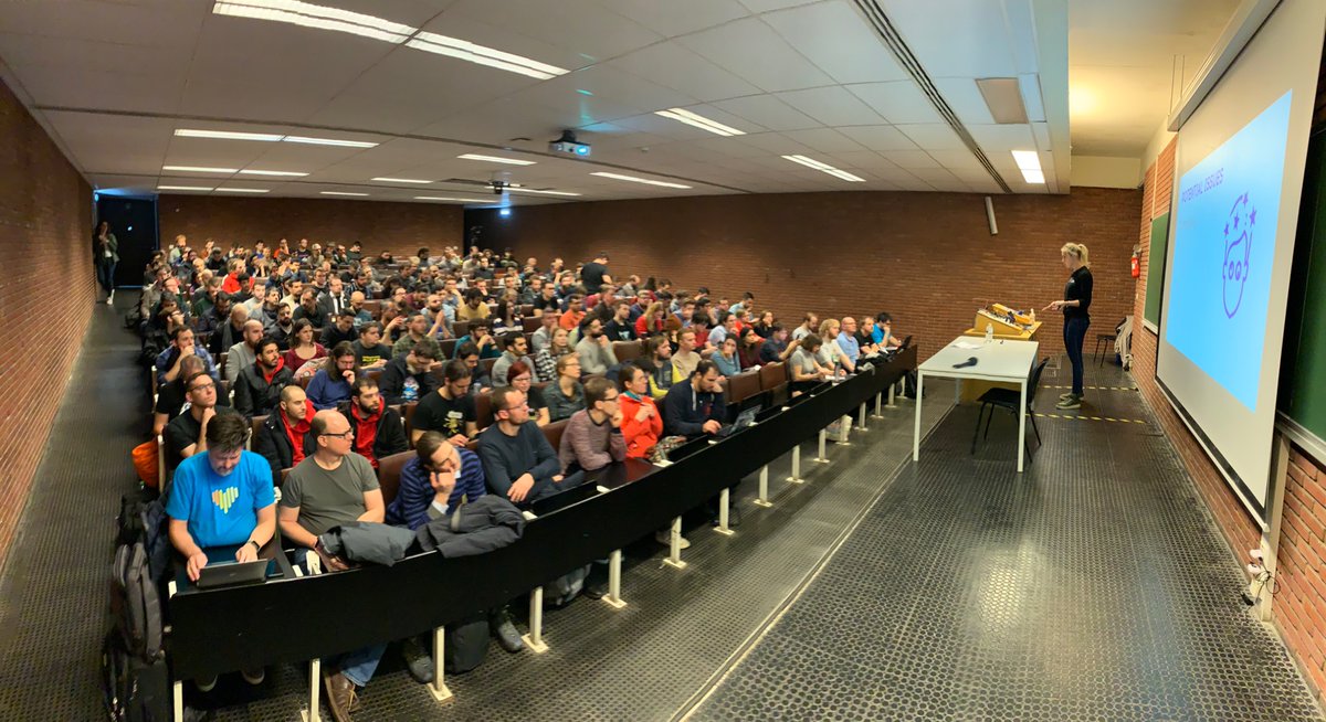 #WebXR in front of a packed#JavaScript at@FOSDEM 2020 listening to@AnastasiiaaaaM