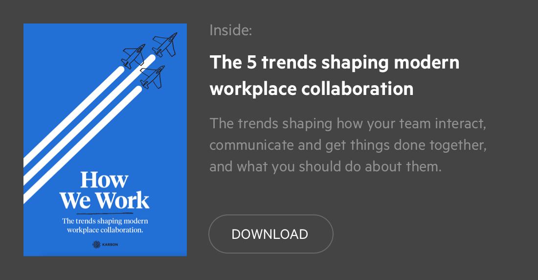 @karbonhq reveals the top 5 trends that are impacting the way teams around the world work together. A must-read for leaders of all businesses. https://okt.to/ePDi9G pic.twitter.com/8FBTygxzt6