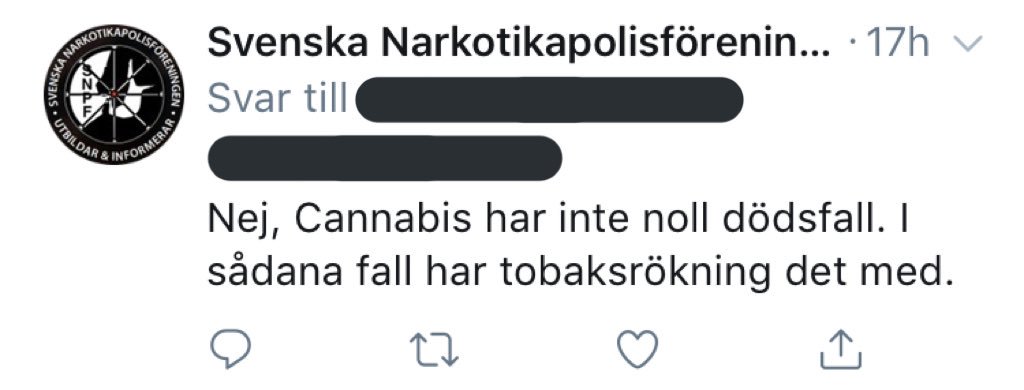 För kontext och transparens. https://twitter.com/DisclosedTW/status/1018118301640286208 … "Skillnaden är ju dock att opioider har enorm påfrestning på kroppen och en fruktansvärt farlig nedtrappning medans Cannabis som ni vet har 0 dödsfall" menade direkta dödsfall som Opioider har då det var det vi diskuterade.