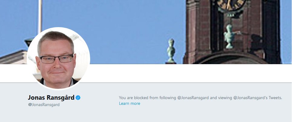 Undrar verkligen vad jag gjort för att förtjäna blockeras av det moderata kommunalrådet i Göteborg @JonasRansgard? Var det mina post-punkvideos? Eller tjatet om de gamla husen i Göteborg?pic.twitter.com/jFW8wvsi1K