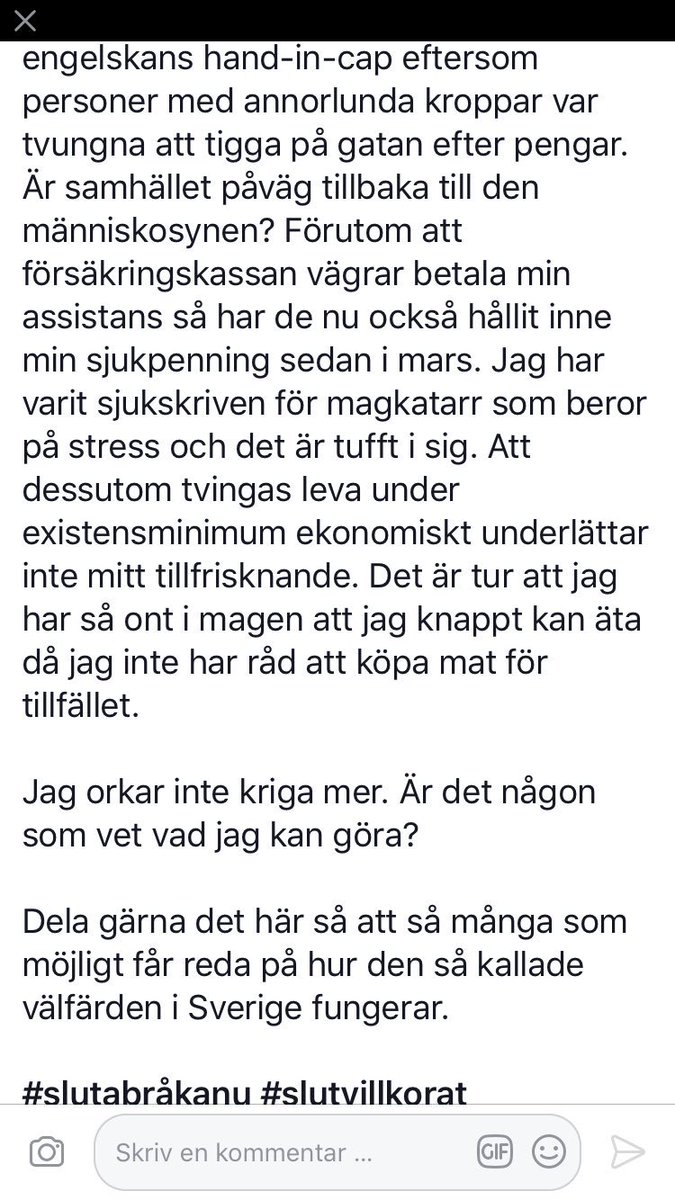Vi är så många nu... systemet måste ändras. Bli kroniskt sjuk eller skadad är inget någon önskar sig.. och sen bli helt utan inkomst och misstrodd..