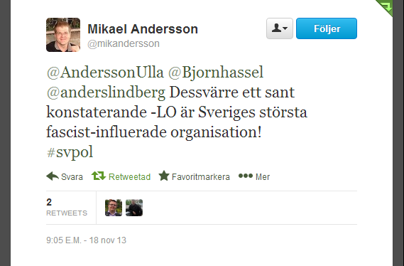 C-politiker kallar LO för facister. Samma man anklagade också Löfven tidigare i höstas för att vara pedofil. #svpolpic.twitter.com/jByudfCWaV
