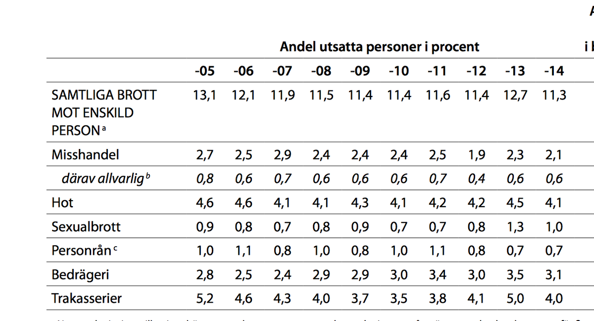 här är en tabell som sammanfattar. den självrapporterade utsattheten för brott faller i de flesta fall.pic.twitter.com/tRsYLVV0wH