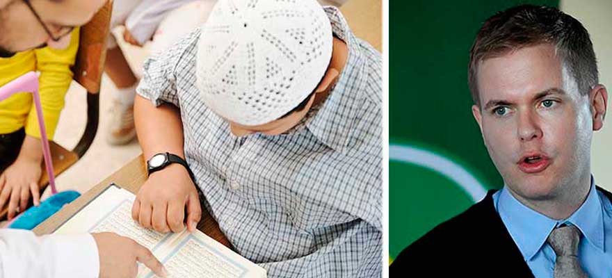 det är olika lagstiftning. I offentliga skolor ska hela dagen vara sekulär m inte i privata där enbart lektioner