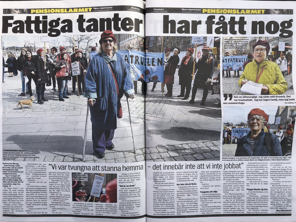 Varje torsdag i röda hatter vill kvinnorna 50+ i organisation #tantpatrullen påminner Riksdagsledermoterna om kvinnornas dåliga pensioner. 400 starka medlemmar är de. @KjellRautio @Solrosuppropet #fattigpensionärer @Feministernapic.twitter.com/bRrNyflCJL