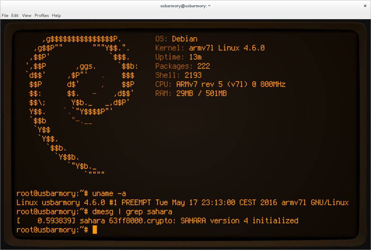 @AndreaBarisani Looks like #SAHARA in the #usbarmory is working in the #vanila #linux #kernel 4.6pic.twitter.com/s2Soo2gnLS