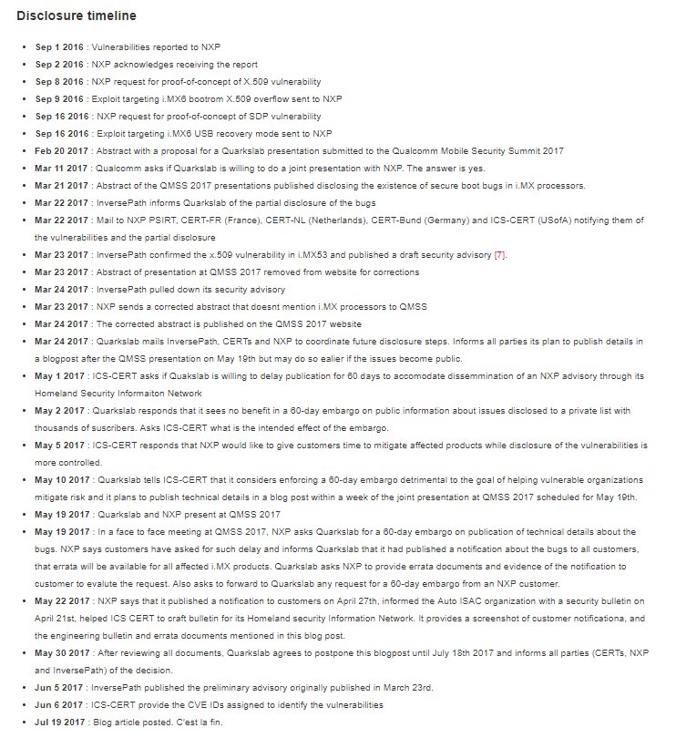 "Responsible disclosure is an easy process". OK. https://blog.quarkslab.com/vulnerabilities-in-high-assurance-boot-of-nxp-imx-microprocessors.html …pic.twitter.com/UrxOLJti0W