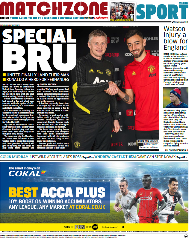 United finally get their man and Eddie Jones loses one of his on Friday's back page. Plus inside,