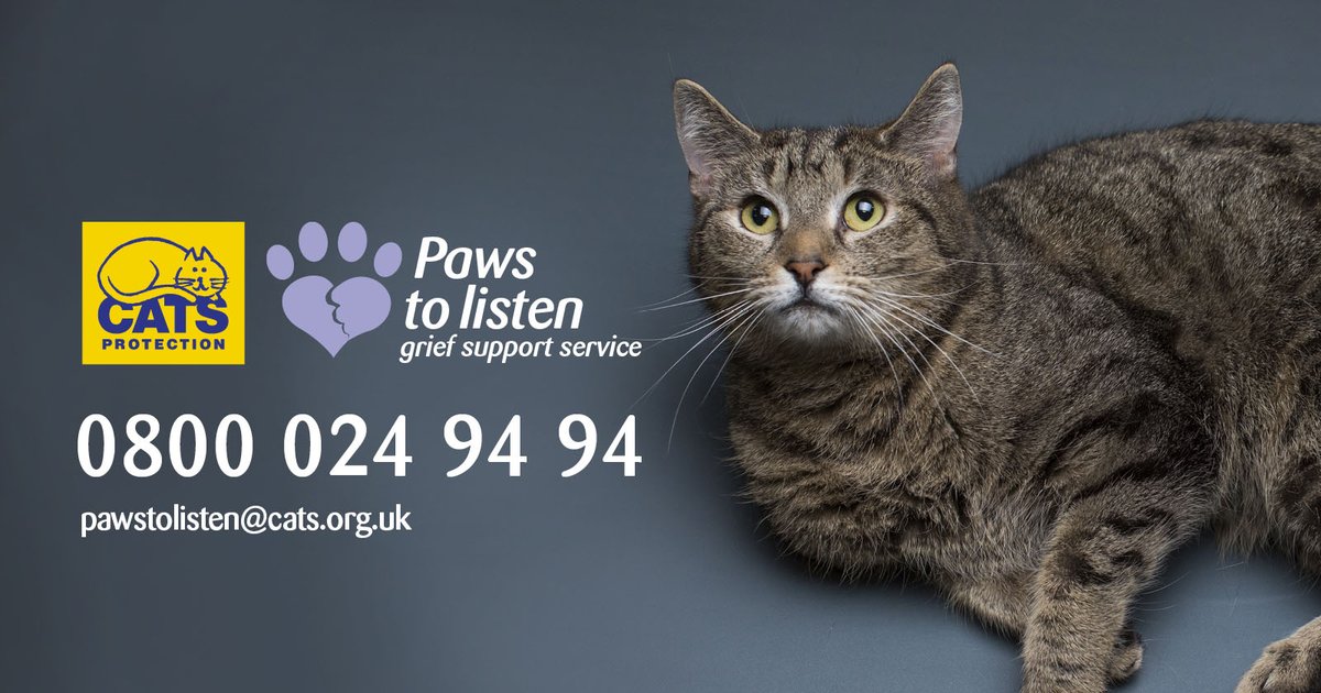 At Cats Protection we know how tough it can be. Paws to Listen is our free grief support service - our volunteers can provide you with emotional support and practical information in your time of need.