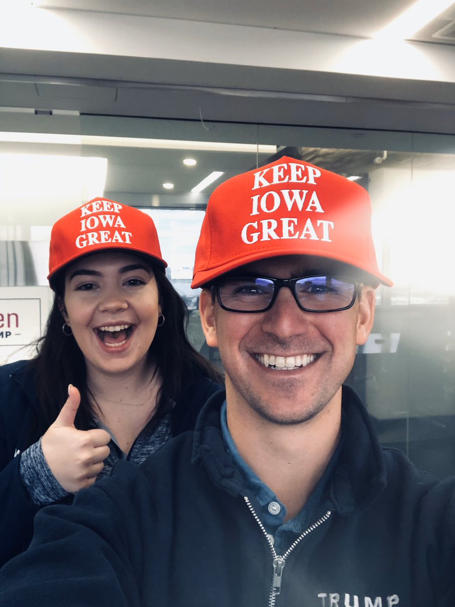 @abigailmarone and I didn’t go to Iowa because we had to man the battle stations of the@TrumpWarRoom but these hats@alipardo brought back are the next best thing.#IowaCaucaspic.twitter.com/ihBDpggHGe