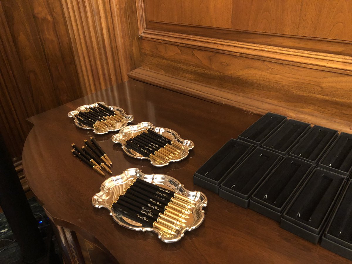 @SpeakerPelosi Can someone let me know approximately how much per pen is taxpayers spent on the roughly 35 custom pens with boxes with your signature in gold that were used in the impeachment signing? Sincerely, The US Taxpayerspic.twitter.com/Z4FC11XCkL
