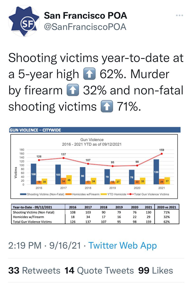 SF violent crime down when violent crime was up in the rest of the country, which was also under lock down. That's enough to oppose a recall that will cost millions if not billions of taxpayer money to implement. We #StandWithElectedDABoudin #StandWithChesa