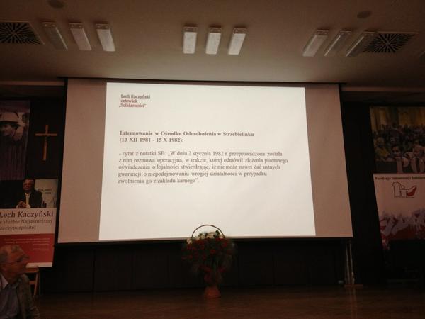 Gdańsk Sala BHP Stoczni: Konferencja "Lech Kaczyński człowiek Solidarności" Cytat z notatki SB o Lechu Kaczyńskim:pic.twitter.com/akML99de