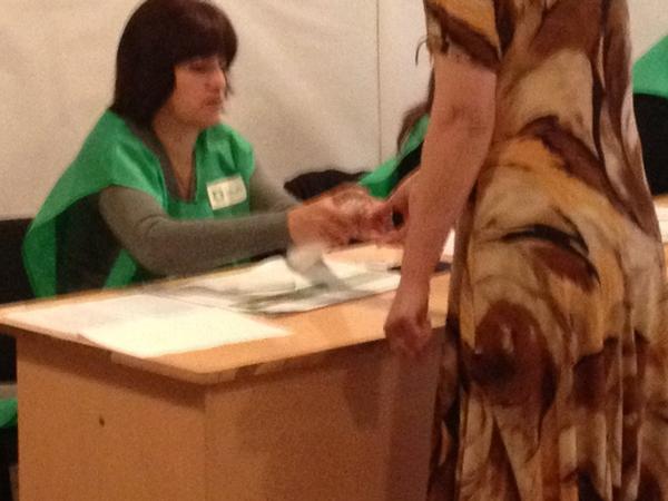 Wybory w Gruzji: komisja wyborcza w Rveli. Obowiązkowe spryskanie kciuka sprayem widocznym w ultrafiolecie.pic.twitter.com/XsrVoZeI