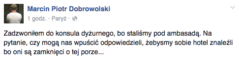 #Paryż https://www.facebook.com/marcin.dobrowolski/posts/10208324613054212 …@AndrzejDuda do roboty bo@BeataSzydlo to akurat jest w drodzepic.twitter.com/je2CmfltuS