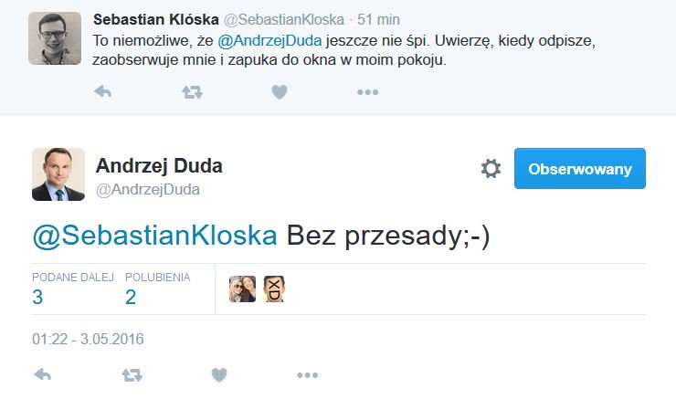 @AndrzejDuda Jakieś powiadomienie mnie po nocy budzi, szykuję się już do mocnej nocnej reprymendy..a to Pan prezydent! Dobry wieczór..(;.. -