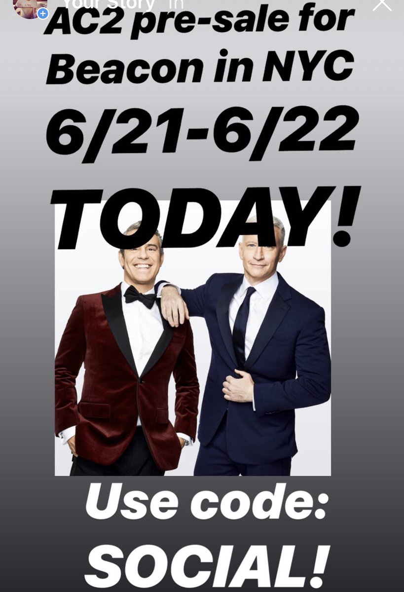 @andersoncooper and@Andy: Deep Talk and Shallow Tales at the Beacon on Friday, June 21 and Saturday, June 22. Use code "SOCIAL": http://go.msg.com/AC2Beacon pic.twitter.com/CsndQo4a3l