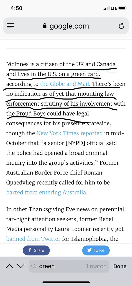 It gets even better. McInnes is an immigrant to Canada, and bill C51 was never repealed. As problematic as that piece of legislation is, I wouldn’t be sad if it was used to strip McInnes of his citizenship for belonging to an extremist organization. It will never happen though