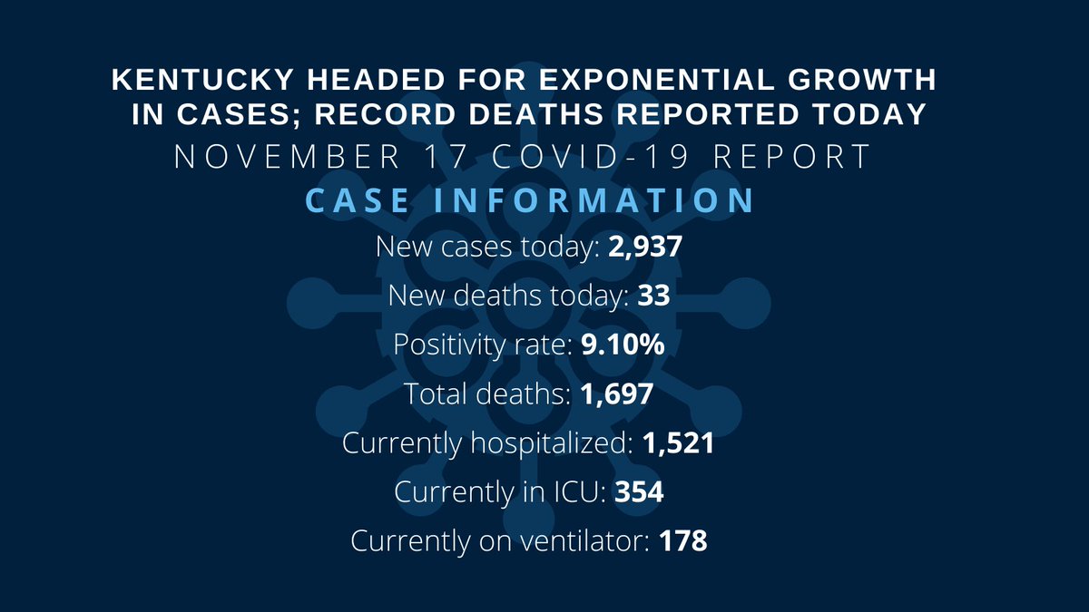 Today, Gov. Beshear reported 112 red zone counties, the state’s highest positivity rate since May and 30 new deaths as he emphasized the need for new restrictions. Kentucky has experienced a 400% increase in positive cases over the past nine weeks. https://go.usa.gov/x7d37 pic.twitter.com/yUnnn3WgFI