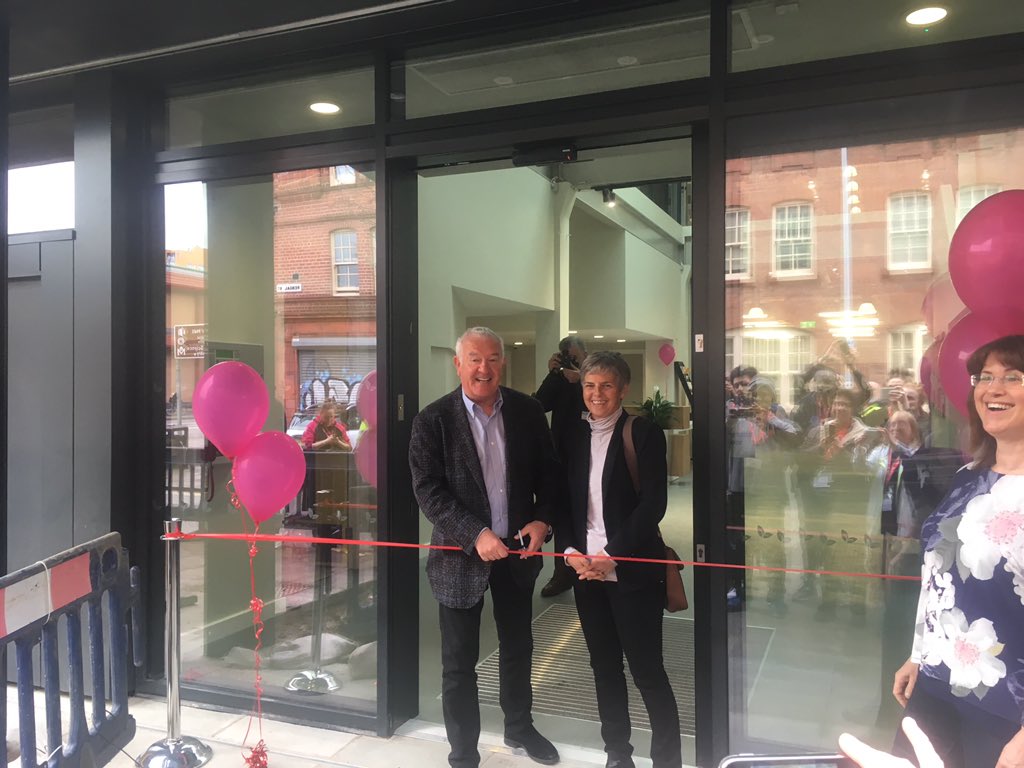 We are officially open! Anthony and Margaret Preston our patrons and who gifted us the building finally cutting the ribbon and opening the doors. We're so excited to welcome everyone into our new space, come down today to see what's on offer, have a cuppa in the new cafepic.twitter.com/DIFLoNJU6D