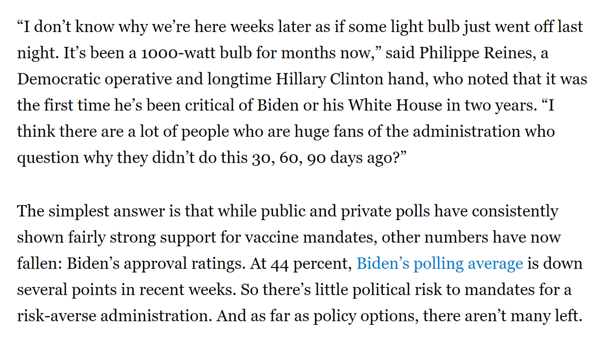 Politico confirms the obvious: Biden issued his unconstitutional, ineffective mandate because his poll numbers are down.pic.twitter.com/2NsKi4wvdT