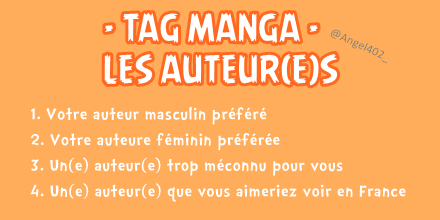 ▶️TAG MANGA N°7 : LES AUTEUR(E)S Citez pour répondre. N'oubliez pas d'utiliser le hashtag #TagManga7 pour que tout le monde puisse retrouver vos réponses. N'hésitez pas à taguer d'autres personnes !pic.twitter.com/ses6IfOPyi