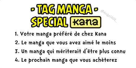▶️TAG MANGA N°8 : SPÉCIAL @EditionsKana Citez pour répondre. 🔴Tout les mangas cités doivent être publiés chez Kana ! N'oubliez pas d'utiliser le hashtag #TagManga8 pour que tout le monde puisse retrouver vos réponses. N'hésitez pas non plus à taguer d'autres personnes !pic.twitter.com/MlOBmmQINW