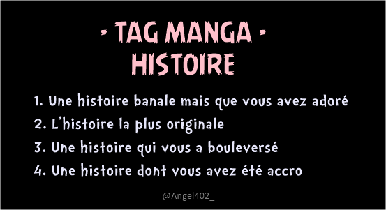 ▶️TAG MANGA N°17 : HISTOIRE Citez pour répondre. N'oubliez pas d'utiliser le hashtag #TagManga17 pour que tout le monde puisse retrouver vos réponses. N'hésitez pas non plus à taguer d'autres personnes !pic.twitter.com/7RfIAx3Vk6