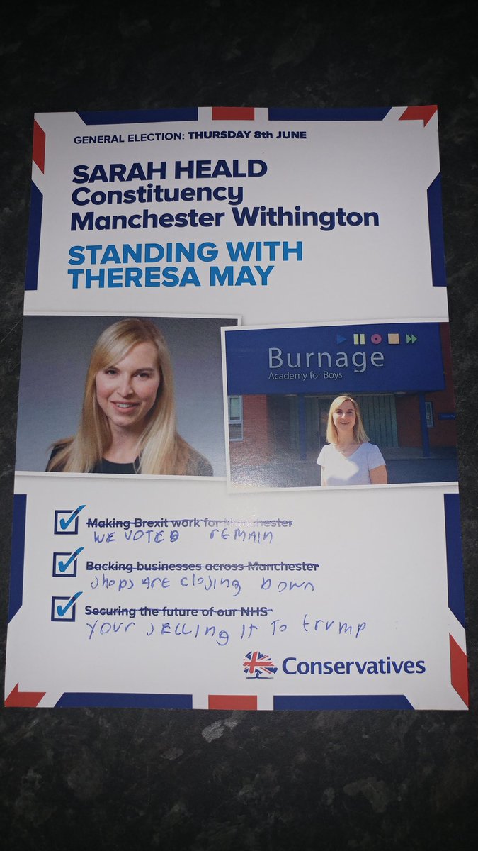 The ironic thing about this is the state of the roads in Stretford/Urmston is shocking due to Tory council and their private company AMEY!
