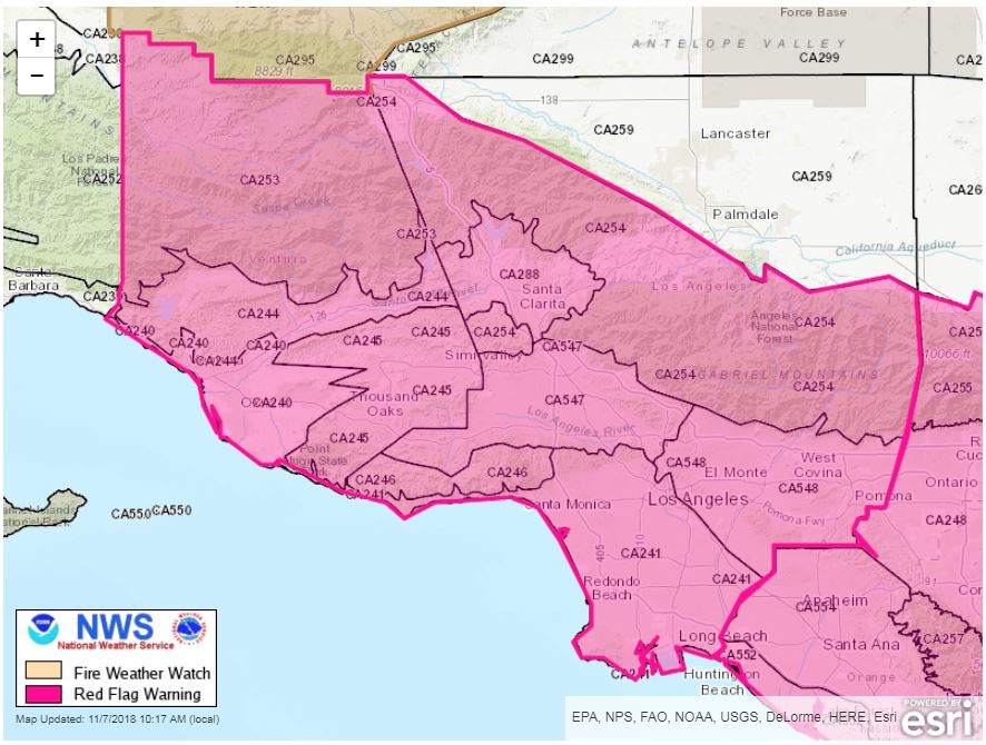 STRONG #SantaAnaWinds expected Thursday thru Friday along with single digit humidities. Red flag warning has been issued. Take necessary actions to be prepared for #wildfires and avoid using flammable items outdoors during this critical period. #CAwx #LAwind pic.twitter.com/MCvH6Unxpw