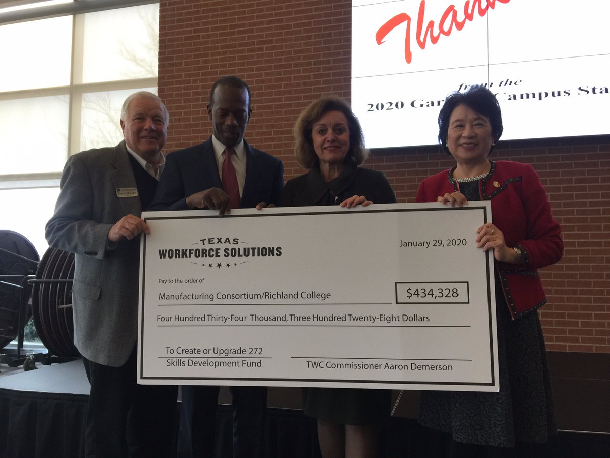 #HD112. Proud of@GarlandChamber & CEO Paul Mayer &@RichlandCollege President Dr. Kay Eggleston. I joined the amazing@TXWorkforce Commissioner & champion for#EcoDevo Aaron Demerson to present a Skills Development Grant.#ourfutureisbright#txlegepic.twitter.com/7iqX6vZWbL