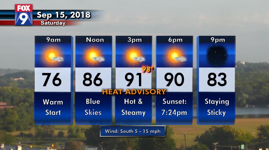 It's the last hurrah for summer as hot & steamy conditions can be expected today as temps get into the 90s, but high humidity will make it feel closer to 100°. Sunshine & light winds will keep the summer style feel alive as well... your Saturday Dayplanner... pic.twitter.com/xaDflDexgl