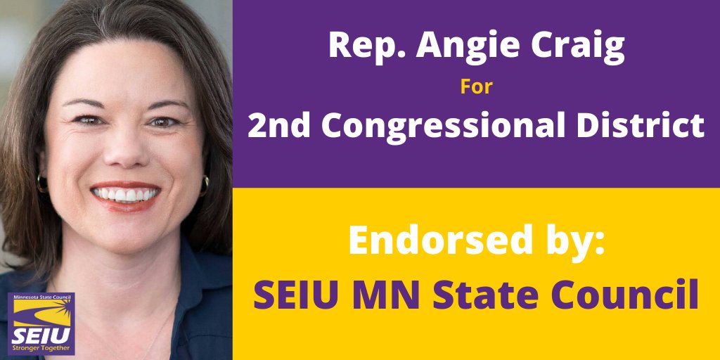 SEIU is proud to endorse Rep. @AngieCraigMN for re-election in CD2! pic.twitter.com/X4XIyCcgzC