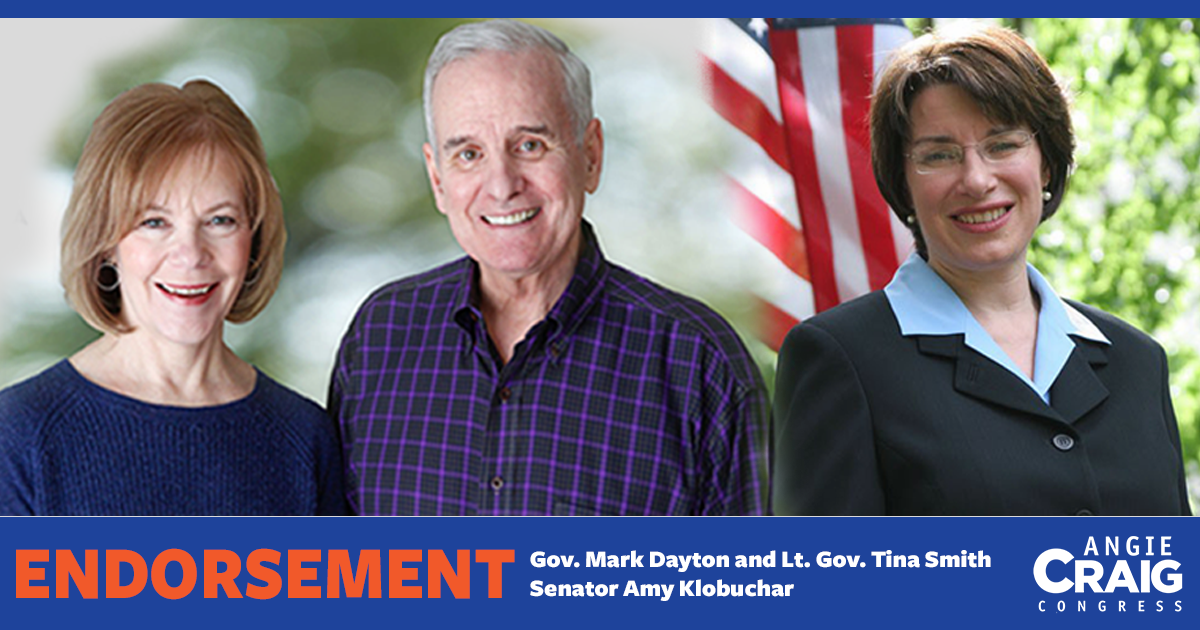 Go @AngieCraigMN! @GovMarkDayton @amyklobuchar