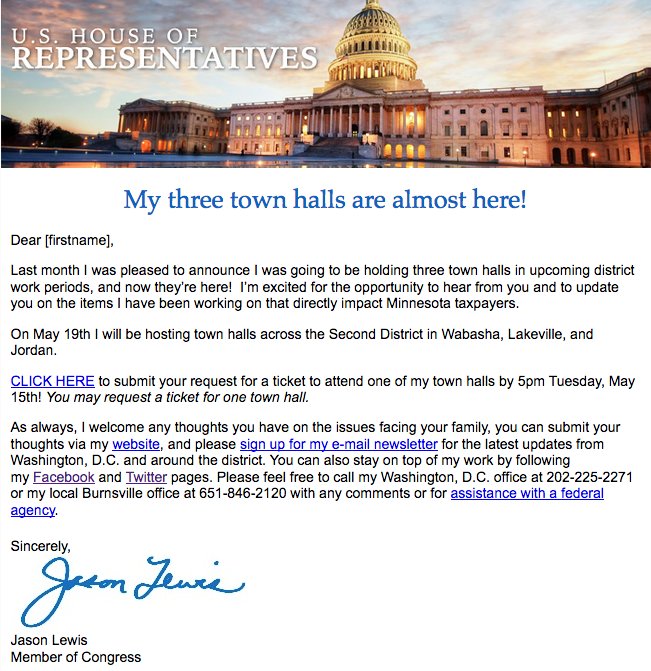 You see, the difference is a Democrat does not have to worry about a Conservative coming and shouting you down. Not true with @RepJasonLewis: the Left will show up, not for debate, but to overrun him and not allow free speech