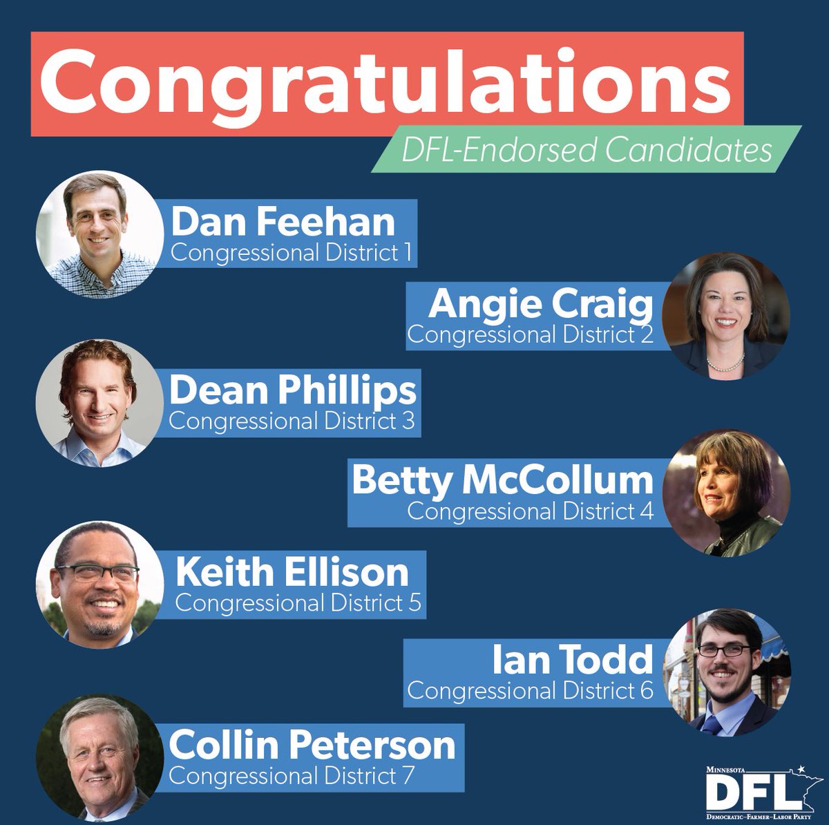 Congratulations to all of our DFL-endorsed candidates for U.S. House - let’s win in November! pic.twitter.com/3vGGMcnKQ7