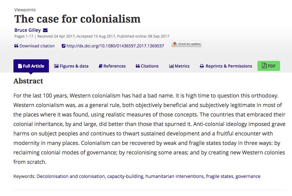 Wow there's a new political science article arguing that colonialism was great & should be brought back shttps://j.mp/2xafjy4pic.twitter.com/chtNBcKVS1